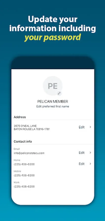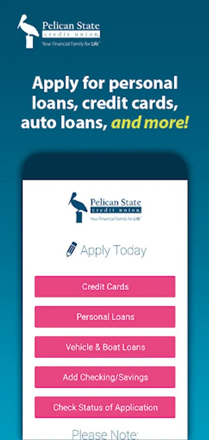 MyPelican is feature-packed to make managing your finances easier than ever! Pelican State Credit Union's app is created with members in mind, allowing you to view your accounts, loans, credit cards, and more at the tap of a finger. The friendly and colorful design makes it easy to see your balances, analyze transactions, apply for loans, deposit checks using your phone's camera, reset your online and mobile app password, and so much more.