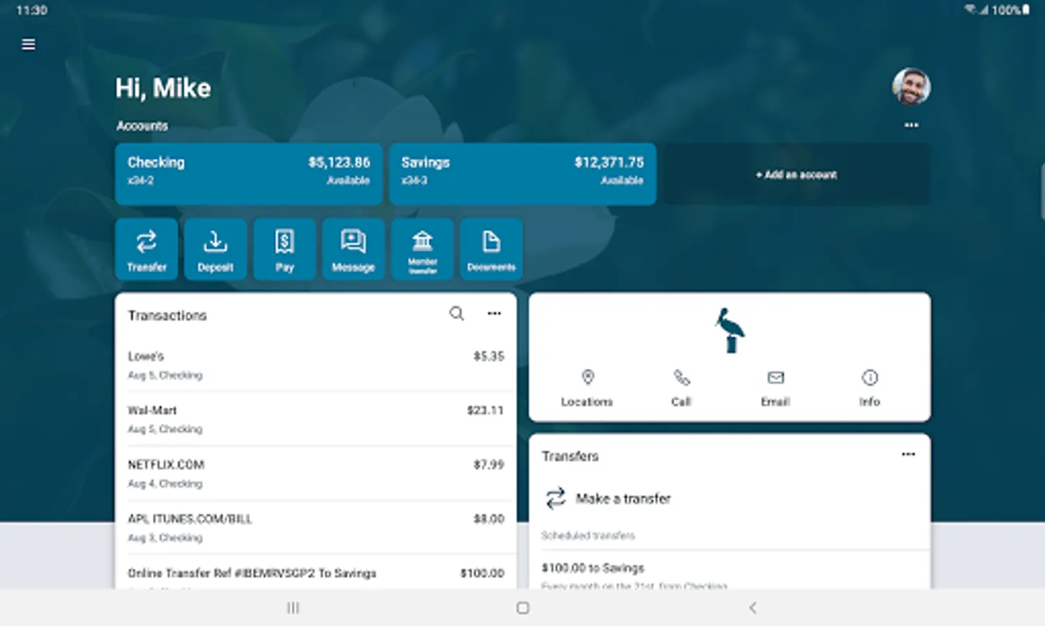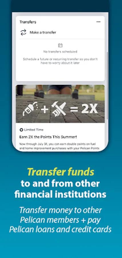 Transfer money between your accounts, another Pelican member, or outside financial institutions