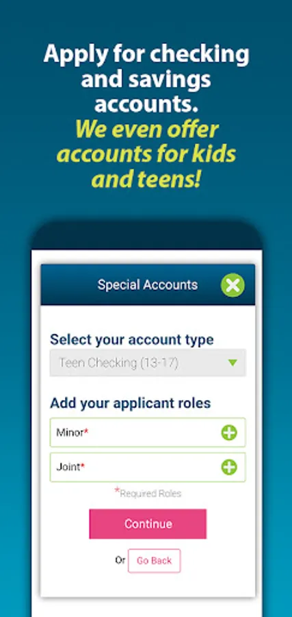 Apply for accounts, loans, and credit cards