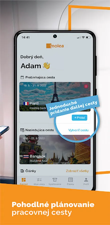 Molea brings you the business trips of the modern age. You can conveniently plan your trip and book all the necessary services in one application. Whether it's a rental car, accommodation with a conference room, or a plane ticket, Molea will solve every request. You can conveniently pay for all services in one place and upload documents for billing. Step into the future of travel planning with the Molea app.