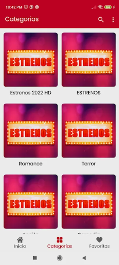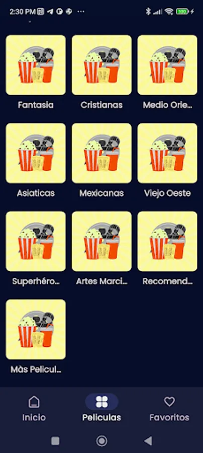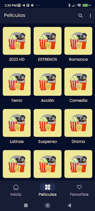Dentro de la aplicación, podrás explorar películas de diversos géneros, incluyendo: