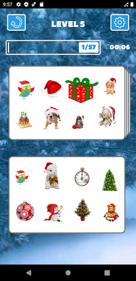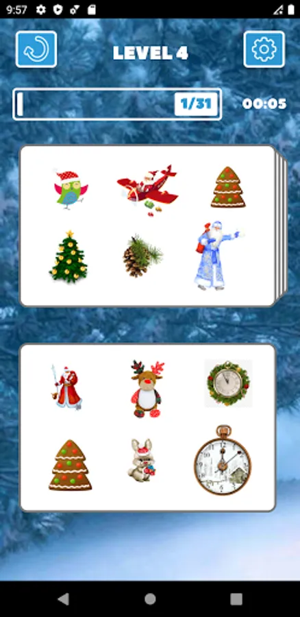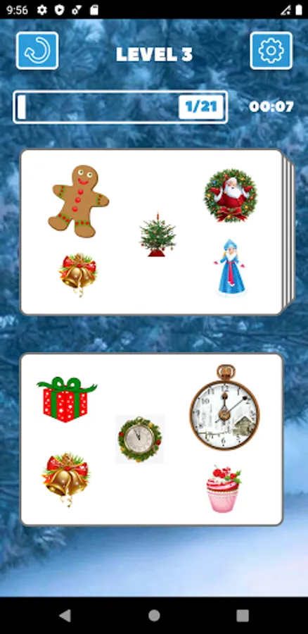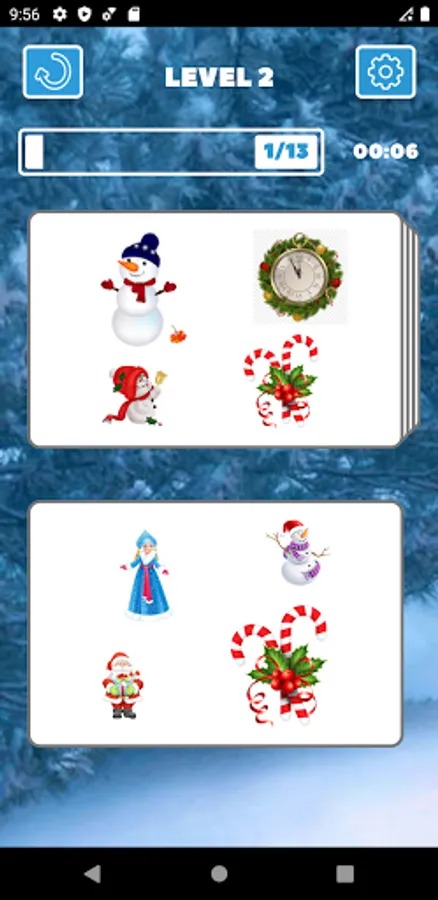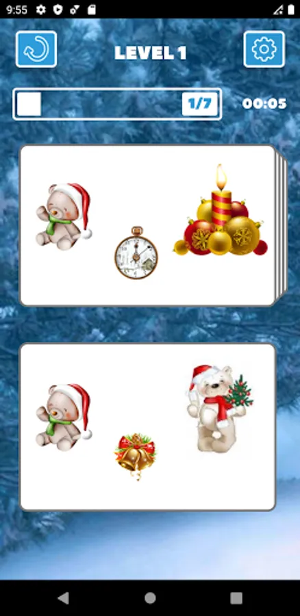 This is an exciting and addicting colorful holiday game for your brain in the spirit of Christmas and New Year. Picture match. Improve your brain power and concentration!