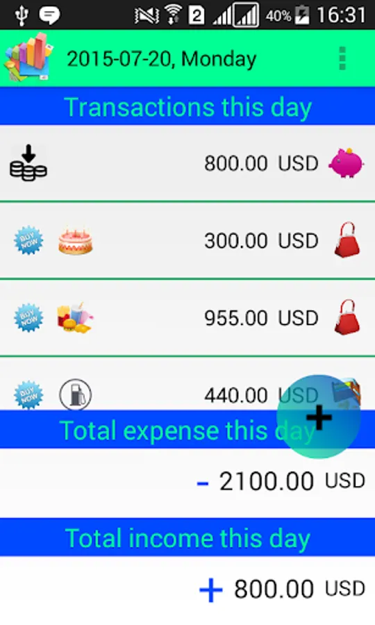 Home Budget helps you to take into account your income and expenses. Detailed statistics for days, months, years, accounts, categories of expenditure makes you think about life. Lots of pictures allows you to write a minimum of text and make use of the program fast and convenient. Calculator with memory remind you of your calculations over time. Export and import of data, color settings.