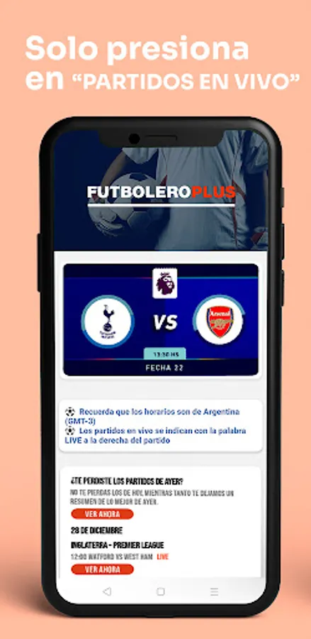 Futbolero Plus es la aplicación ideal para todos aquellos amantes de esta pasión. Nos permite seguir todos los partidos del Fútbol, para que no te pierdas ningún resultado.