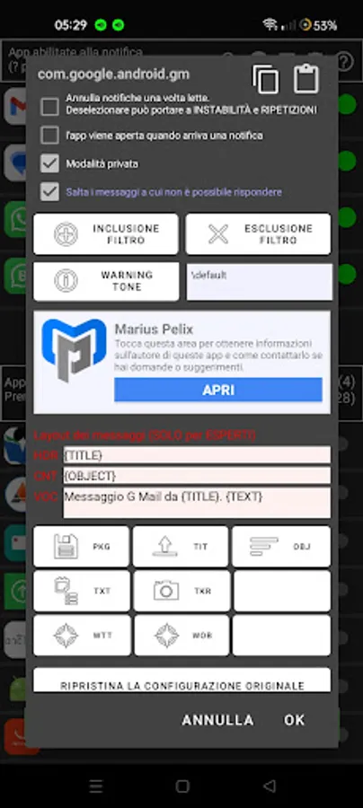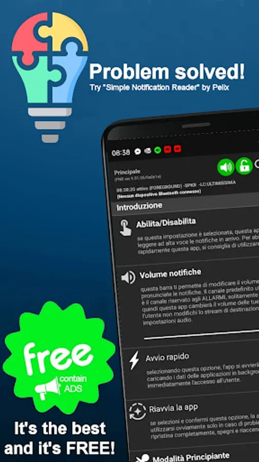 This app was born from the experience I gained developing my other very popular app, known as FNR, "Free Notification Reader", a very powerful and complete notification reader, with more than 150 macro options, and therefore necessarily complex.