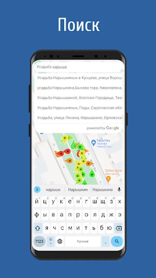 Search - allows you to quickly find the place you are interested in on the map.