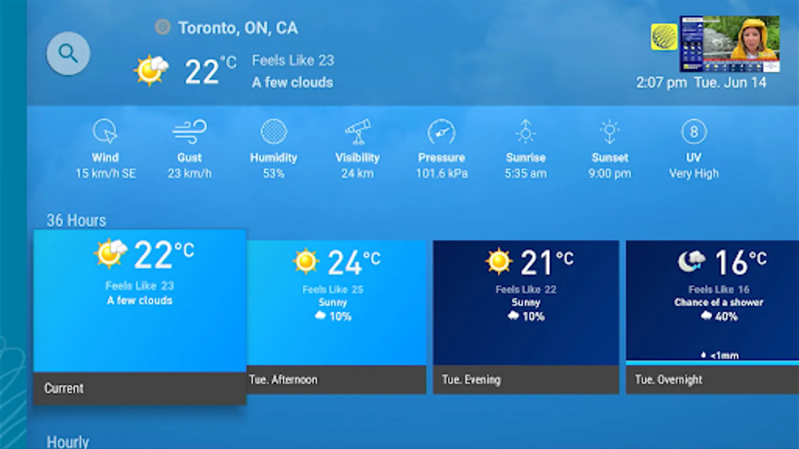 The Weather Network Android App is an immersive weather experience unlike any other, providing you with access to hyper-local weather information and a large library of on demand video content all within a few clicks of your remote. Tired of waiting through your local news to get your weather forecast? We’ve got you covered. Access your local forecast information 24/7 on-demand, or, lean back and watch hundreds of hours of original video content for free. Cable subscribers have access to our live channel for storm coverage and the latest weather stories in your region. Our advanced forecasting technology provides hyper-local weather forecasting as close as one-mile from where you live, as well as, weather warnings, alerts, radar and traffic flow maps to help you stay safe and to better plan your day.