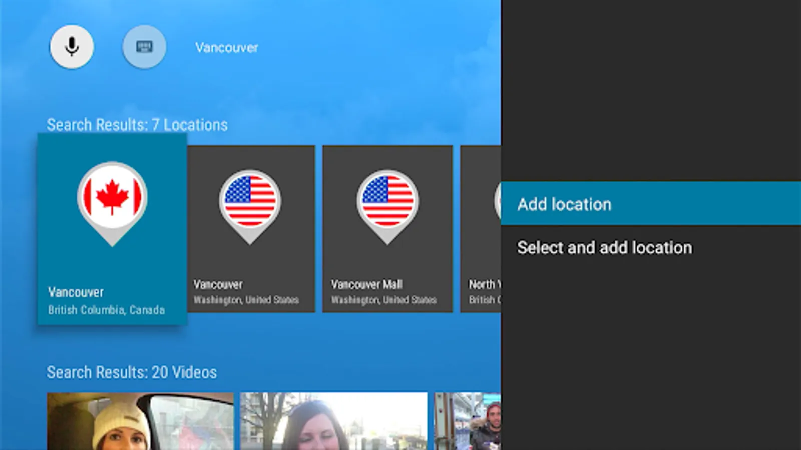 - Voice search capabilities for locations, weather terms, related videos & photos