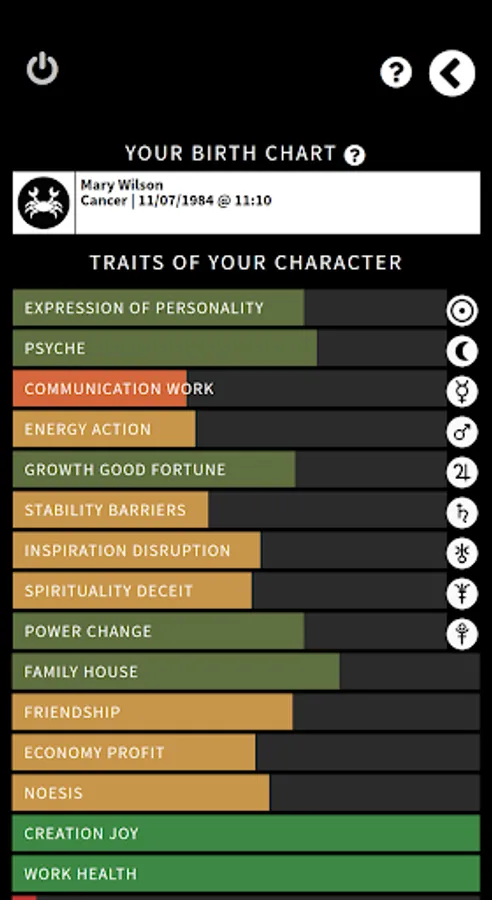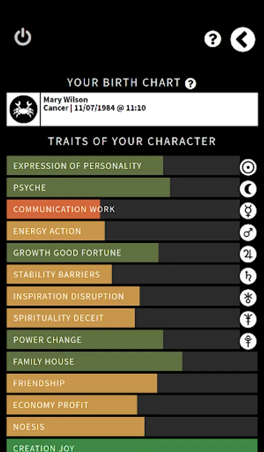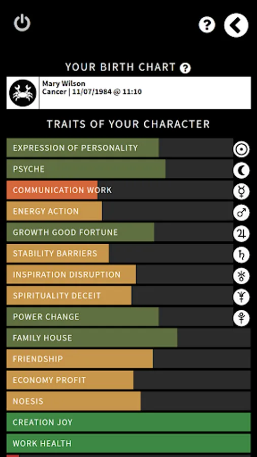• Astrology ratings for the progressed planets which illustrate the personal progression and character development over time