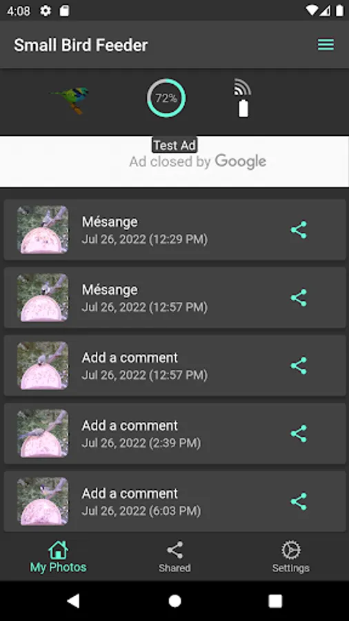 - Photos can be taken by the Application as well (no need of a bird feeder)