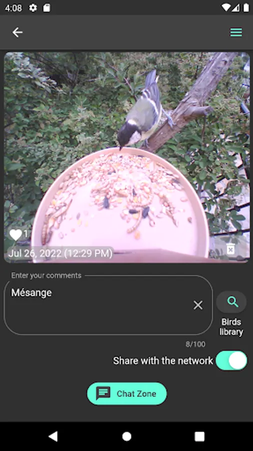 Get instantly the birds photos on your smartphone, share them and chat with the other birds enthusiasts through the Happy Bird simple chat zone.