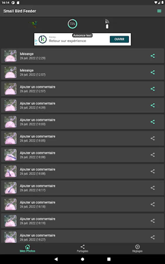The Happy Birds Application has been created to work along with a DIY connected bird feeder equipped with a camera and published on the Instructables.com site (end of January 2022), where you will find a comprehensive tutorial for building your own one.