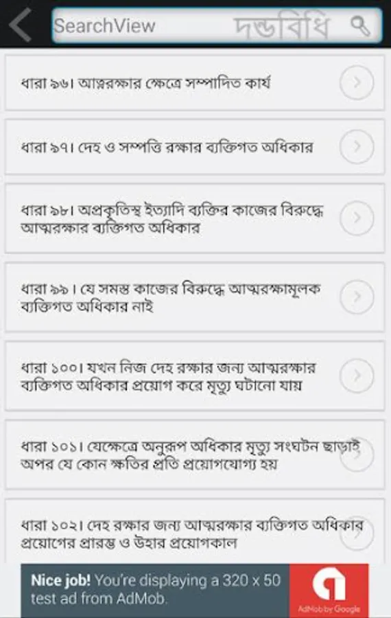 Using Bangla Penal Code -touch on the screen to enter the book app. Swipe your finger to go to next or previous page or sections.
