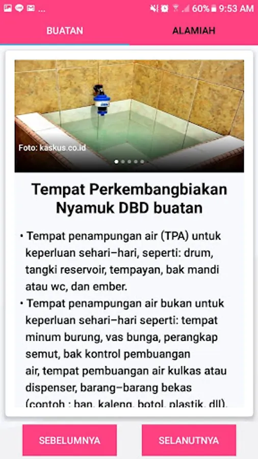 PromkesDBD_UY is a health promotion application that can be used as a DBD counseling media. This application was created by the YARSI Univ researchers team. The purpose of making an application in order to help improve public knowledge about DHF, causes, symptoms, Aedes mosquitoes, control of the actor, and eradication of Aedes mosquito nests. With the increase in public knowledge it is hoped that the community will further understand and further the expected impact is that it can form positive community behavior in dbd control through management of mosquito breeding sites and vector eradication