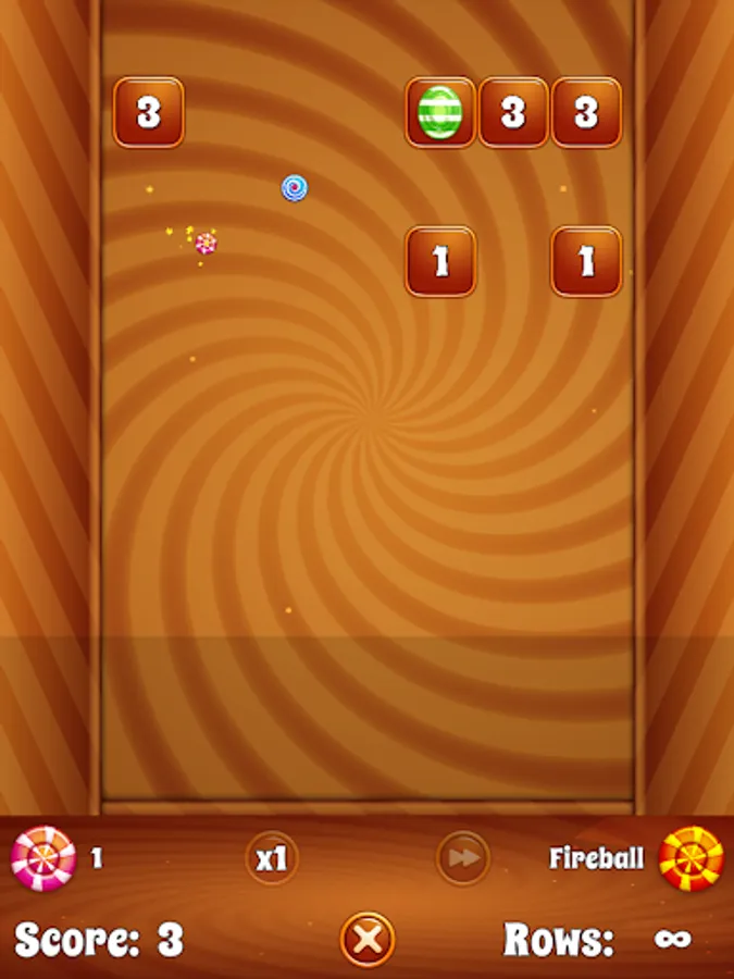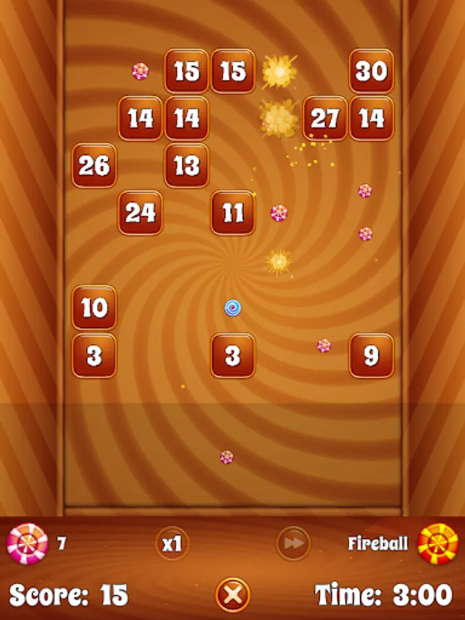 Use your candy pieces to take out the numbered blocks in this fun game of skill and reflexes! Fling, bounce, and ricochet your candies around the playing area! Hit special power ups to take out multiple blocks at once! Collect pickups to increase your candy quota, gain valuable multipliers, or turn your candy into an unstoppable fireball! Survive as long as you can in Endless Mode, accumulate as many points as possible in Timed Mode, or work your way through 40 progressively-difficult levels in Campaign Mode!
