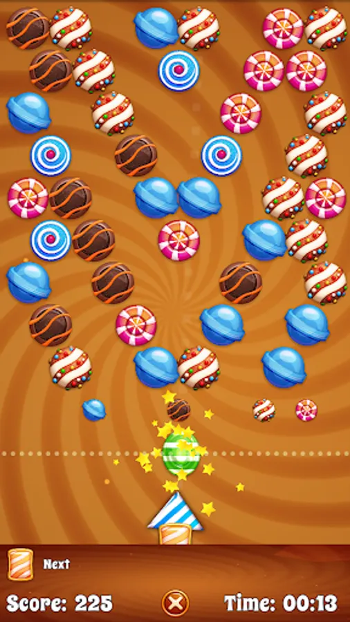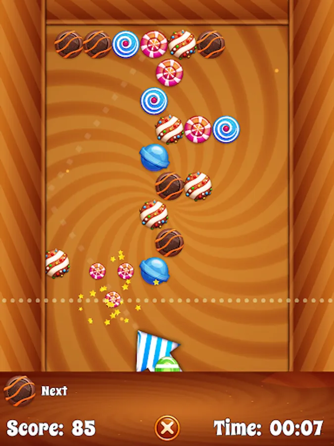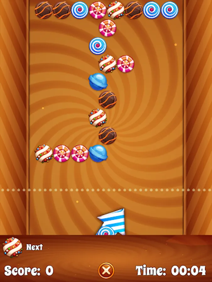 Slide your finger left and right to rotate the candy catapult, then release to send the candy flying across the screen. Match three or more types of the same candy to remove them from the game board. But be careful as the candies are continually descending - if the candies reach the dotted line, it’s Game Over!