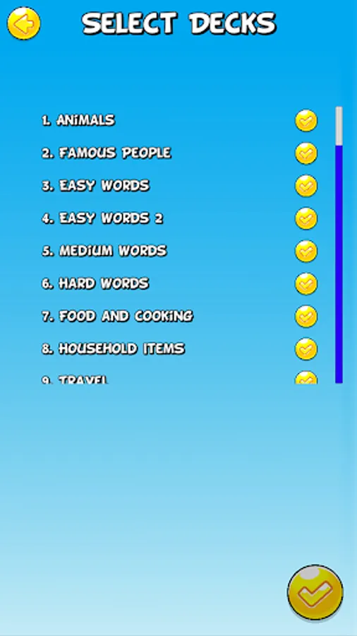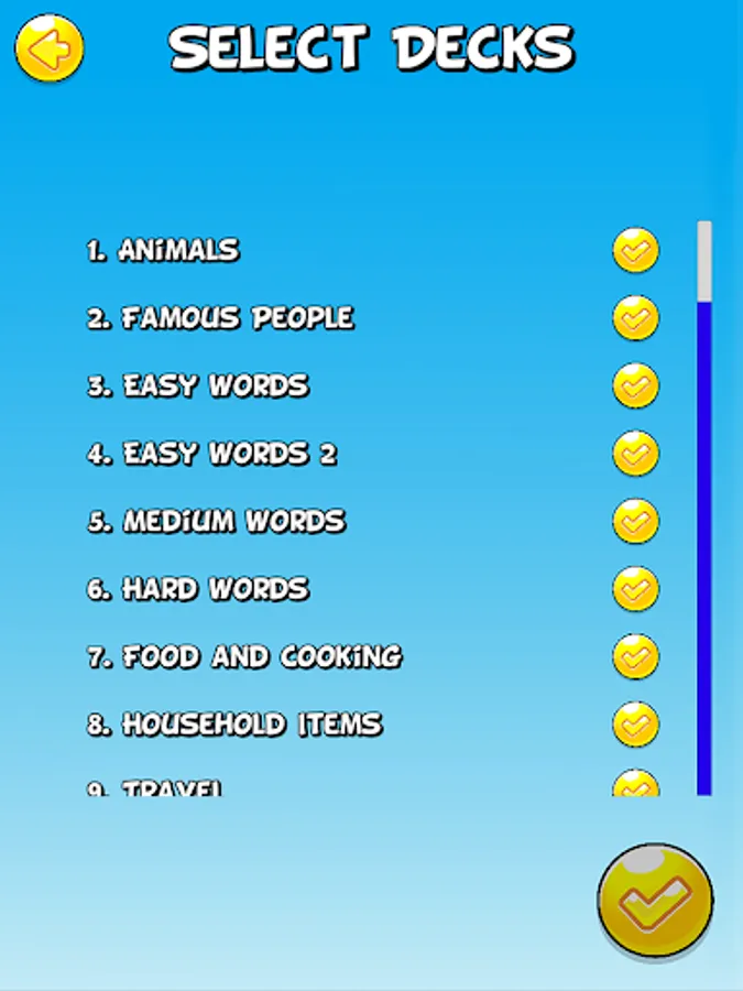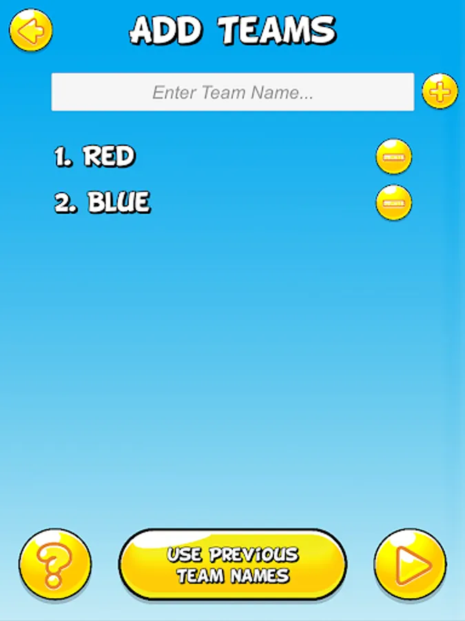 Select the decks you wish to play with, then enter the names of your teams. For each turn, a player from each team must describe the Catchphrase to the other members of their team, before pressing the correct answer button and passing the game over to the next team. If a team member accidentally uses any part of the Catchphrase, they must press the incorrect answer button. A leaderboard is shown at the end of each round, and at the end of the game.