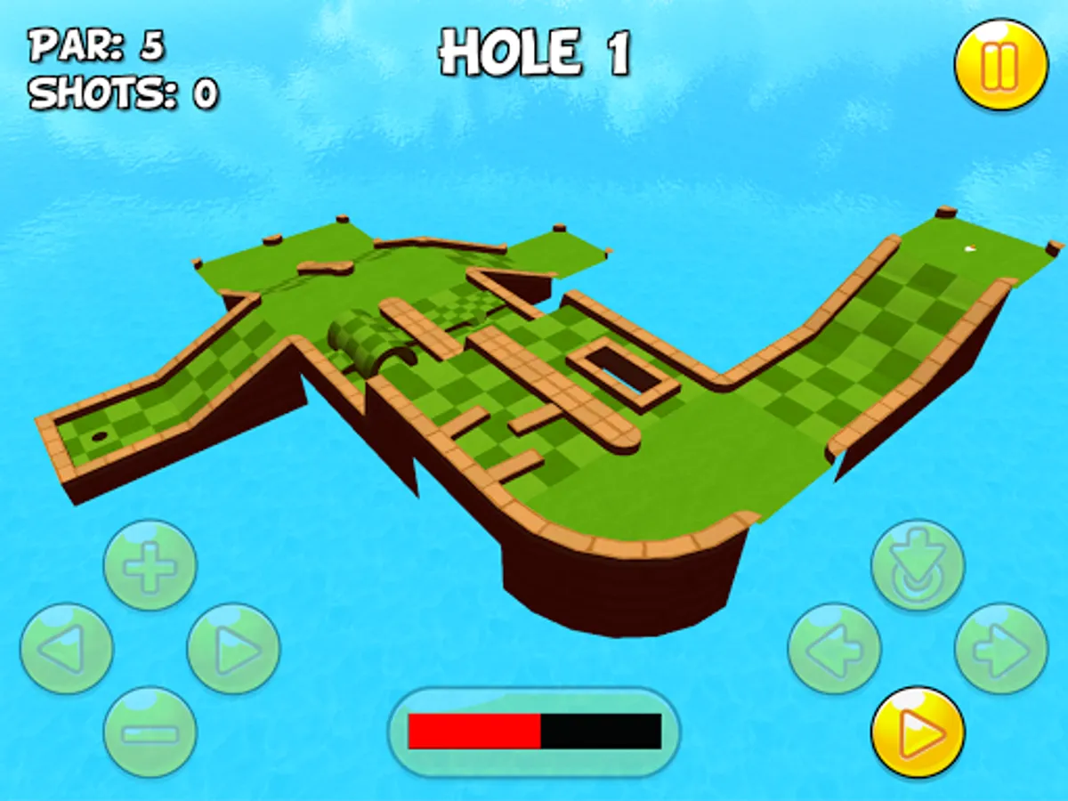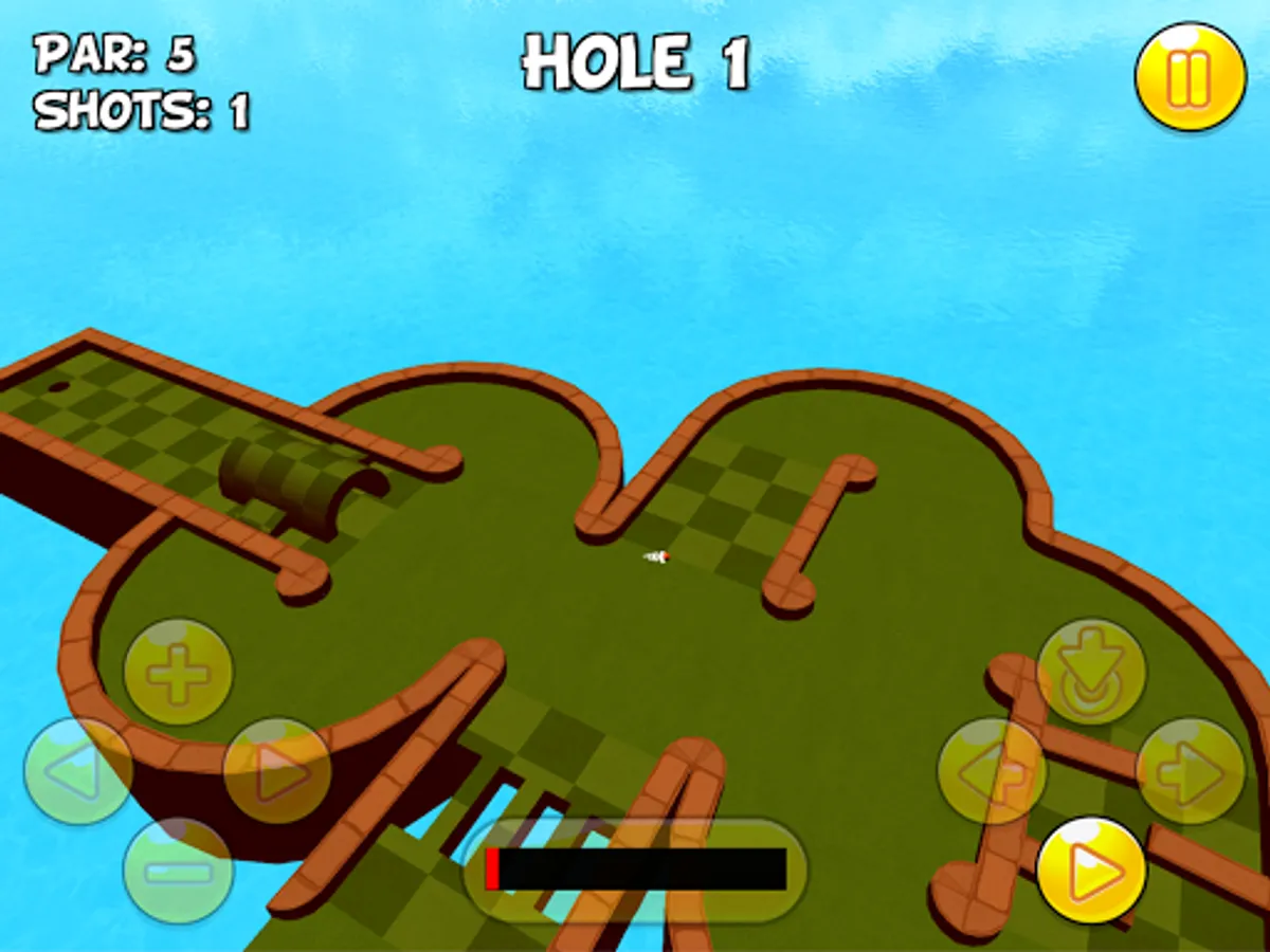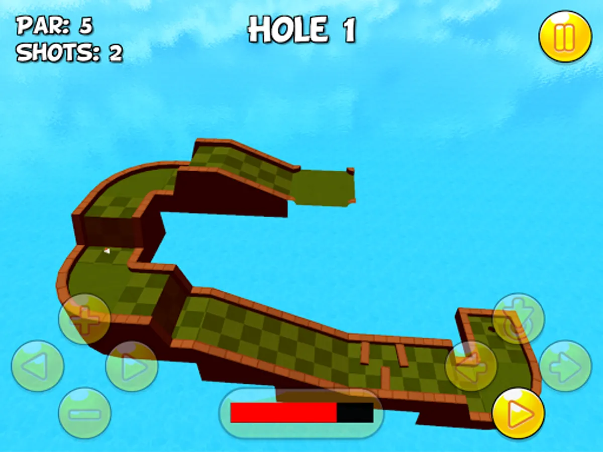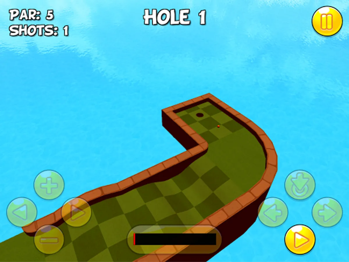 Use the on-screen buttons to rotate the camera and zoom in and out. Use the arrow buttons to aim your shot, or tap the target button to aim directly for the hole. Tap the shoot button to start your shot, and when the power bar reaches the optimum spot, tap shoot again to make your putt. Watch the power bar carefully and try to putt with the proper amount of force. Finish each hole under par to increase your score, and try to line up the perfect shot for a hole in one!