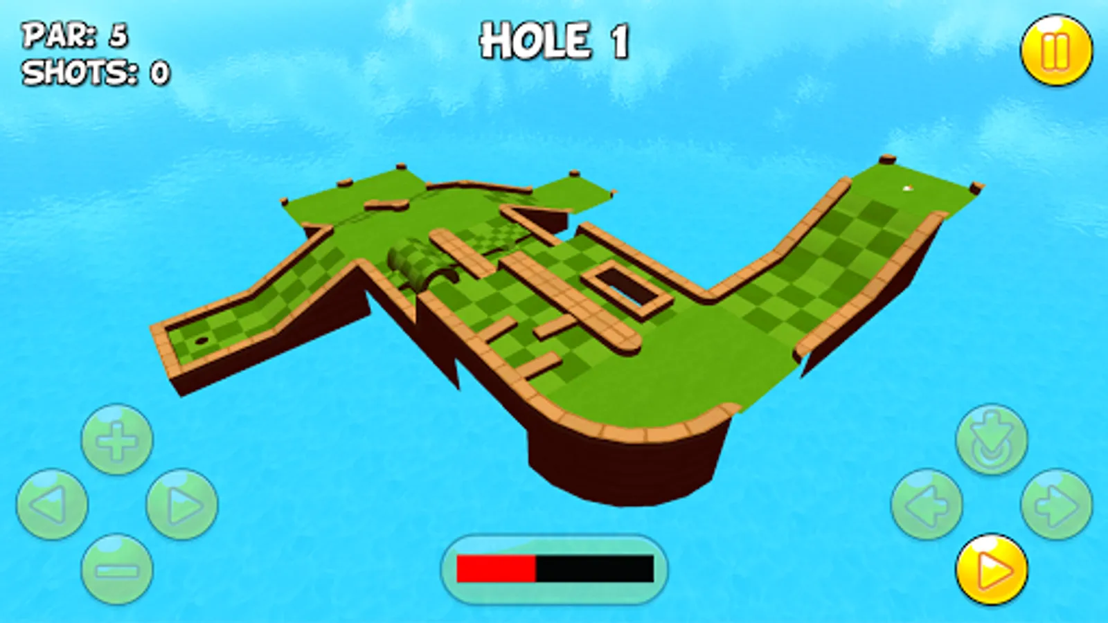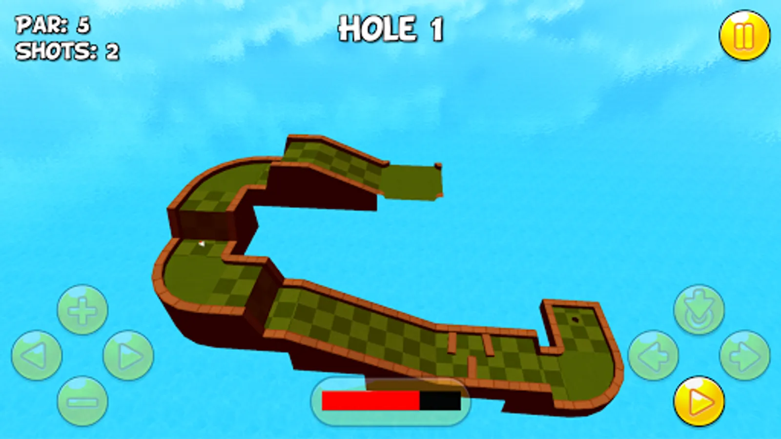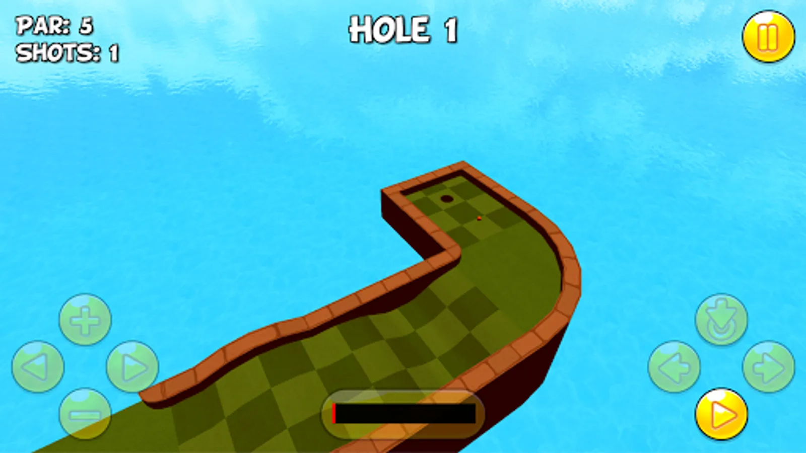 Use the on-screen buttons to rotate the camera and zoom in and out. Use the arrow buttons to aim your shot, or tap the target button to aim directly for the hole. Tap the shoot button to start your shot, and when the power bar reaches the optimum spot, tap shoot again to make your putt. Watch the power bar carefully and try to putt with the proper amount of force. Finish each hole under par to increase your score, and try to line up the perfect shot for a hole in one!