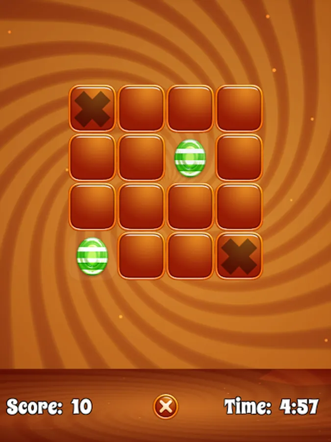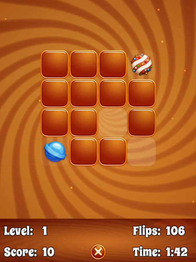 Tap a tile to reveal the candy underneath. Find a matching candy to remove them both from the board. Keep tapping and try to remember the candy locations. Keep an eye out for trophy pieces that instantly complete the level, but beware of hazard pieces that will quickly end the game!
