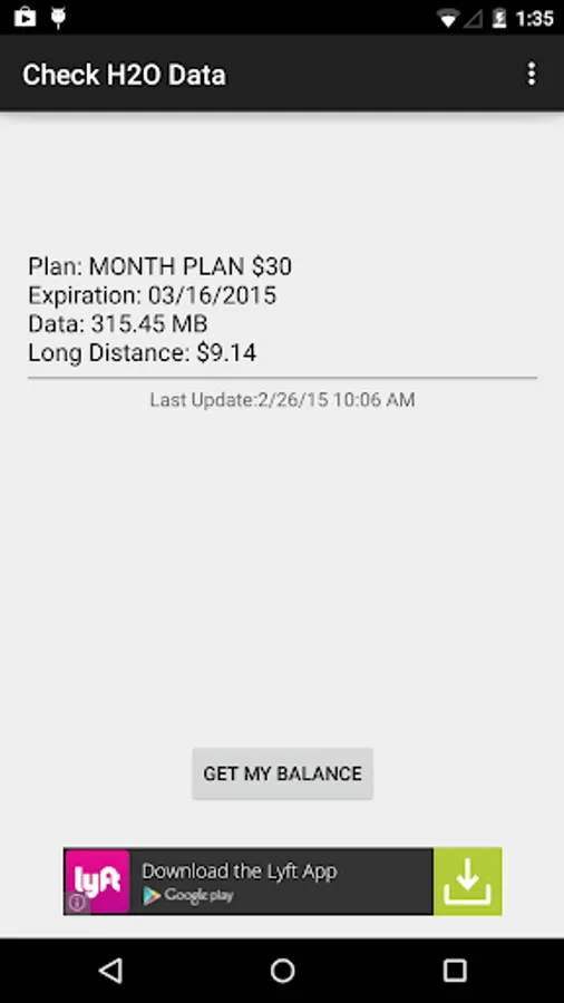 You can use this application to get the data balance of the prepaid phone service provider H2O Wireless (United States based).