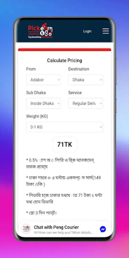 Express service in Dhaka city in 3-5 hours (Tk 149/kg)