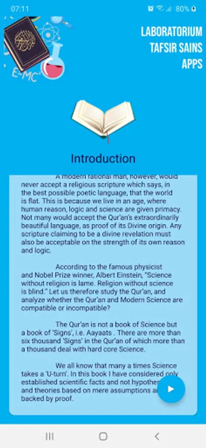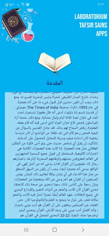 The Laboratory of Science Interpretation Mobile learning was developed to assist students in learning Islamic verses based on scientific interpretation. This application consists of material, images, videos, and this application has three languages, namely Indonesian, English, and Arabic which can help students in the process of scientific interpretation or ilmy interpretation.