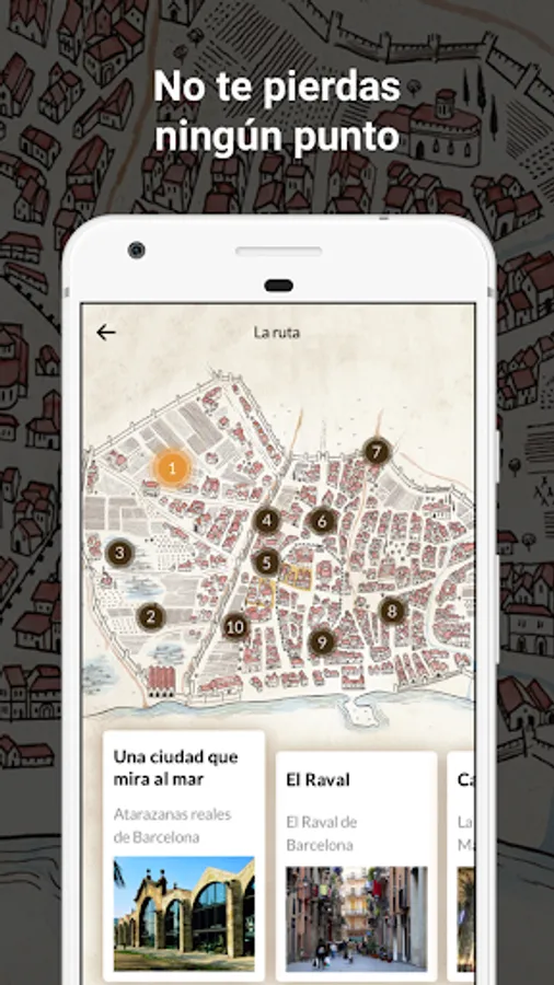 This application will allow you to live with this fabulous tourist route almost recreating the magical world of Barcelona still recognizable, but whose past is unknown. And if you're a fan of this publishing phenomenon you will understand as the author has recreated perfectly the effervescent feudal society, prisoner of a voluble and corrupt nobility, and you will feel for a moment like Hugo Llor, the protagonist, a man struggling to emerge forward without sacrificing their dignity.