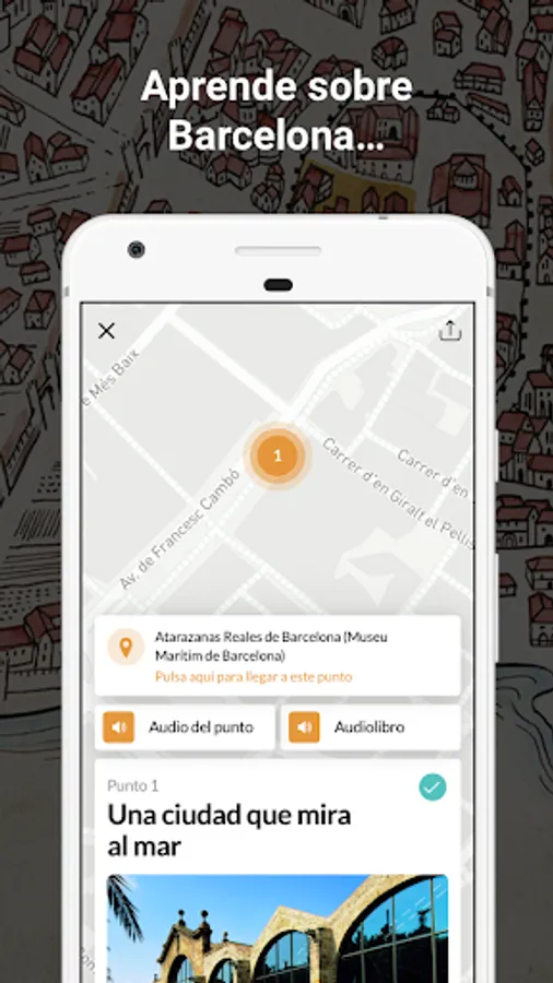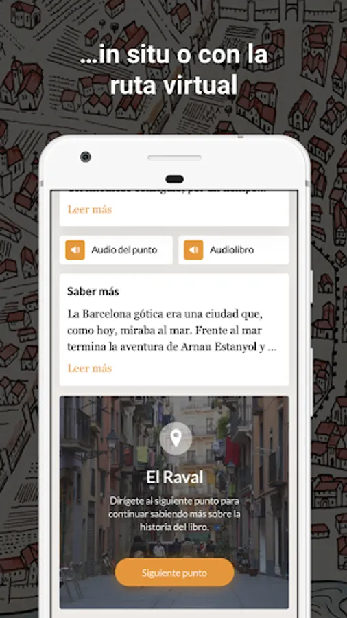 You can live the experience in the first person and make a tourist route to complete the 10 most representative places of the itinerary of the city present in both books through an interactive map explaining each point by an audio guide and complemented by fragments selected audiobook. From the Royal Dockyards the Church of Santa María del Mar through the Hospital de la Santa Creu, the streets of the Raval neighborhood, the Episcopal Palace and the Gothic Quarter of Barcelona.