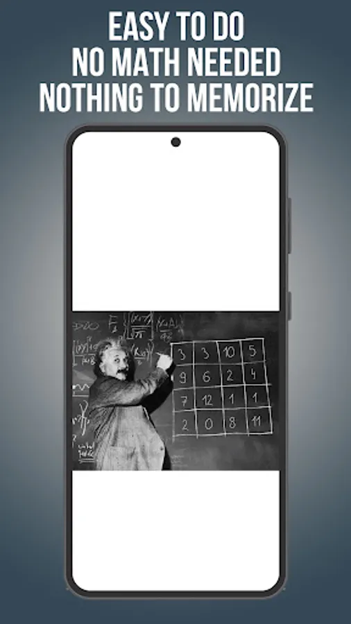 Here's what happens: You ask a friend to name any number between 1 and 99 and they say 47. You explain to her that the number 47 is an interesting choice because you have a photo of Einstein next to a blackboard with a 4X4 square. In each square there are numbers that when added in any direction they add up to 47.