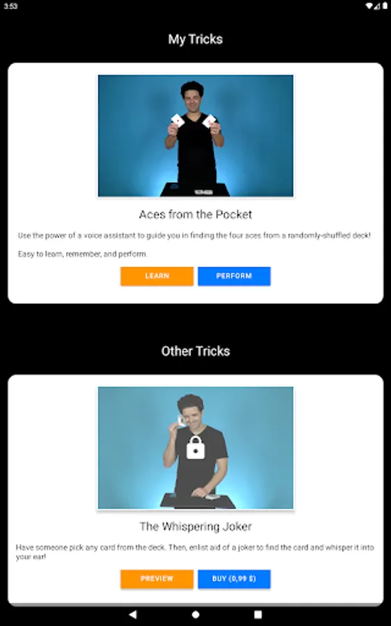 Teach Me a Magic Trick turns your phone into a performance! Learn a trick and impress your friends and loved ones!