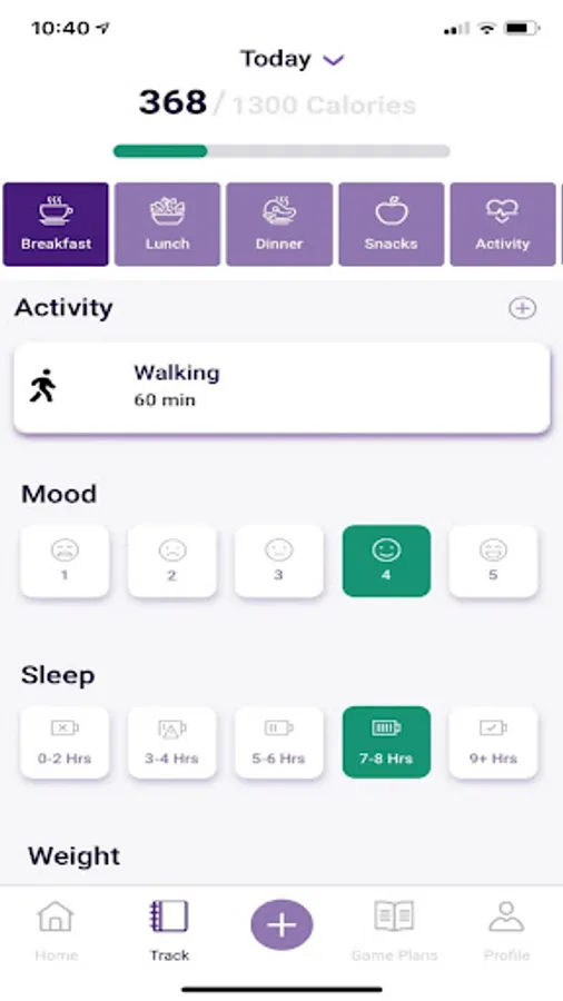 • Track and get advice on daily food, exercise, weight, water, sleep, mood, how to handle stress, and more