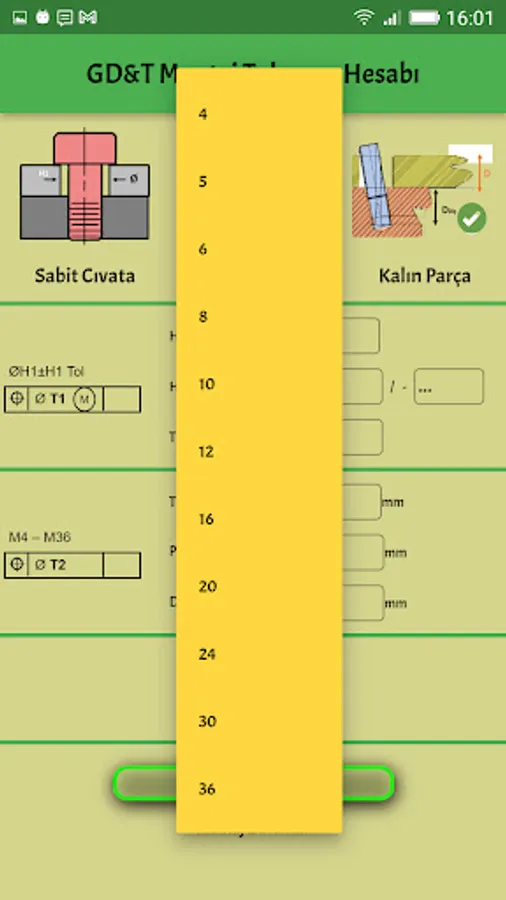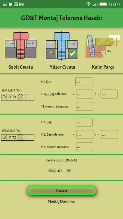 It is a program that helps you determine position tolerances for both threads and holes in bolt-mounted connections for technical drawings prepared according to the Geometric Dimensioning and Tolerancing standard. With this program, you will be able to determine the correct hole diameter, position tolerance and bolt size for threading, drilling or thick parts.