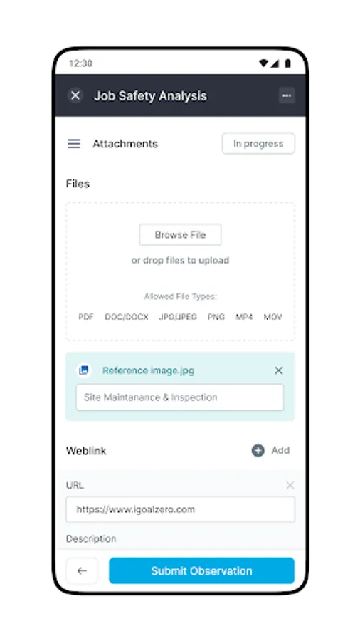 The iGoalZERO app captures Job Security Analysis (JSA) and Work Permit image and data for work performed by contractors and employees without changing the current work process. It also supports off-stream events like TAR or Turnaround. This tool enhances the engagement of workers in the safety program and improving productivity.