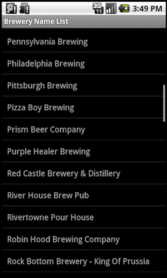 This is the Ultimate Pennsylvania Brewery Finder Application for all brewery enthusiast and hobbyist. Our application contains data contact information on many Pennsylvania Breweries in all regions of Pennsylvania. At a touch of a finger, you can easily find the address, phone number and website on over 100 breweries, brewpubs, microbreweries and tap rooms throughout the state of Pennsylvania.