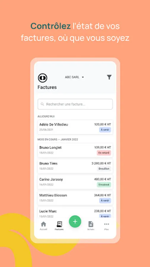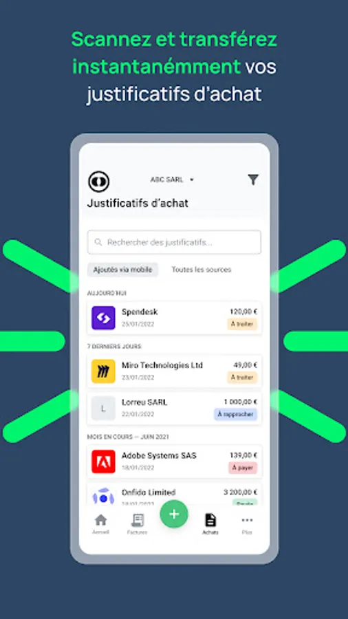 - Filter the receipts of the selected company (status, issue, due date, supplier, amount, creation)