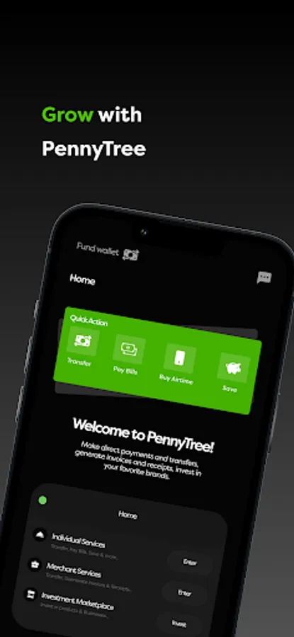 PennyTree is a neo-bank that provides you with financial services in the most convenient way. You now have access to individual services like bank transfers, bill payments, and personal vaults for savings, where you can earn up 15% per annum.