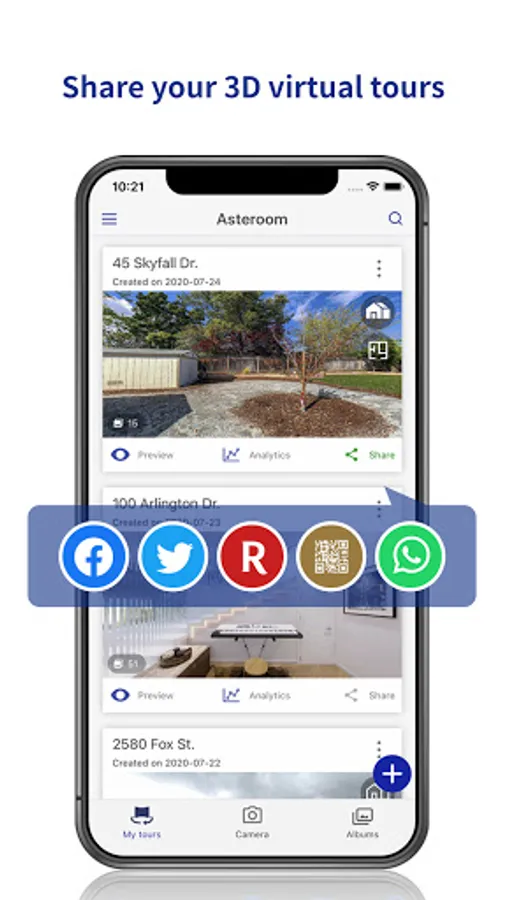 Asteroom is the easiest way to create 3D virtual tours. A 2000 sqft home can be completed in 10-15 minutes. Unlike other time-consuming solutions that require you buy expensive and bulky 3D cameras, Asteroom allows you to do everything including shooting, editing, and sharing the tours on your phone.