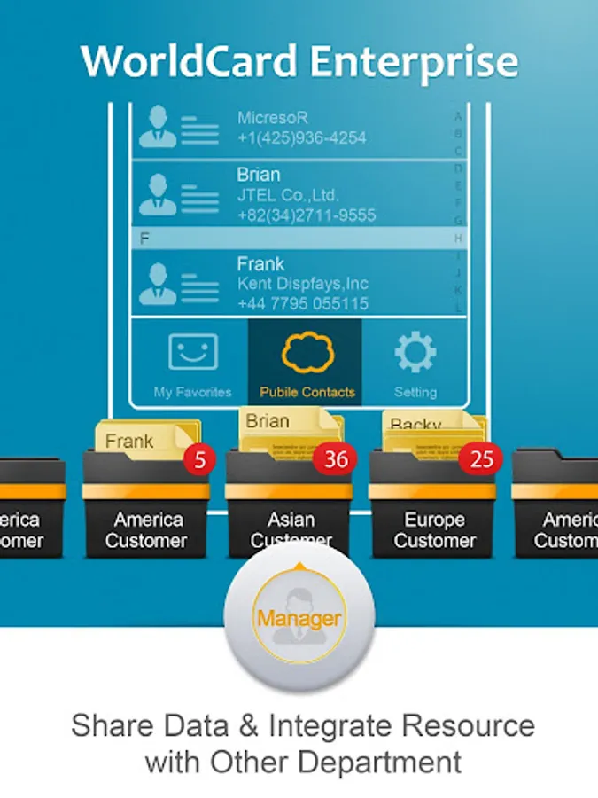 Designed for companies to build business contact information platforms. By recognizing the business card information, you can collect clients and suppliers’ information from each department and save these data inside the exclusive server of the company. Keep the cards information safe and sound without worrying the leakage of information. You can always add, search for, update and reach the contacts with iPhone and Android Phone. WorldCard Enterprise is definitely the optimal choice for companies to manage contact network.