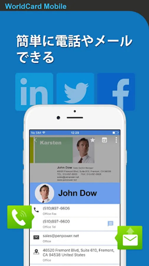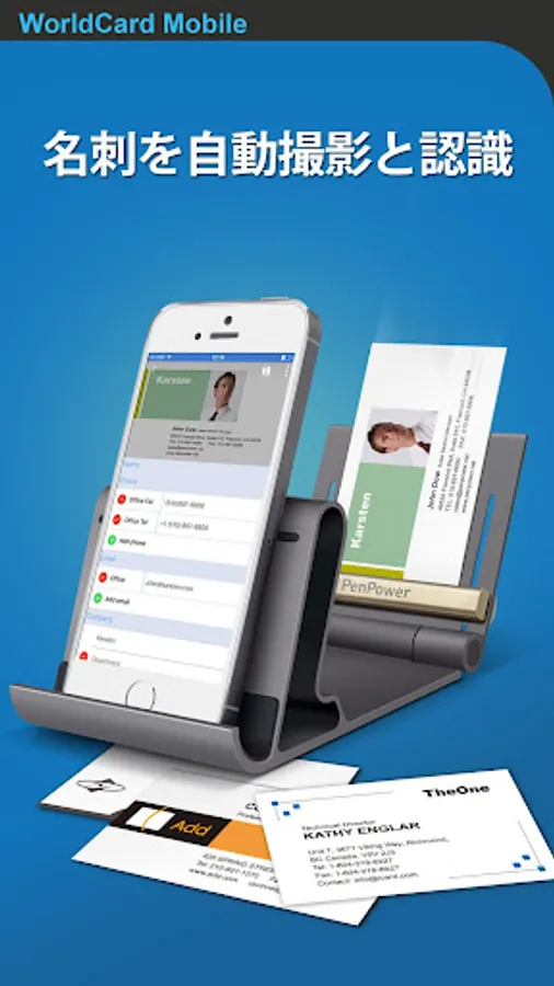 The completely renewed WorldCard Mobile only takes a picture of a business card with a smartphone, and automatically recognizes information such as the name, company name, department, position, address, phone number, email, etc. of the business card and links it to Android Phone contacts. increase. 1-click call, email delivery, route search, Facebook, Twitter, LinkedIn, personalized mobile assistant!
