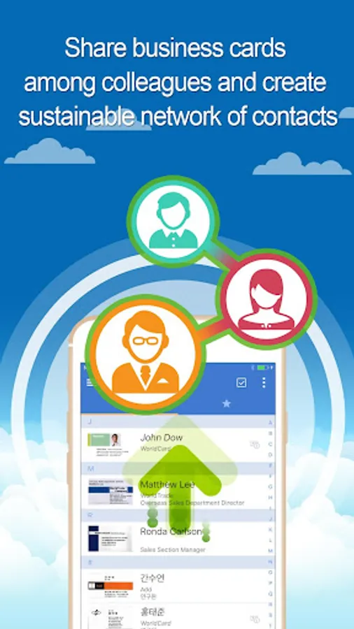 WorldCard Cloud provides a secure and smart contact-management system for business people striving for productivity. With the WorldCard Cloud client software, users can easily save business cards via a smartphone or PC and utilize contact information anytime anywhere.