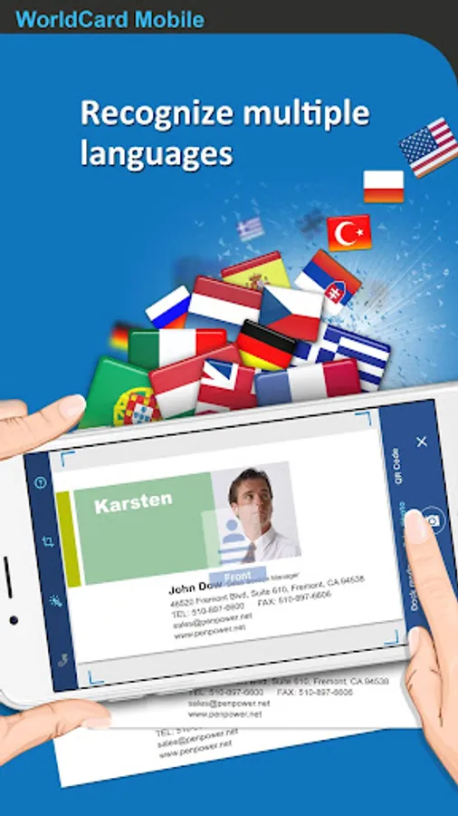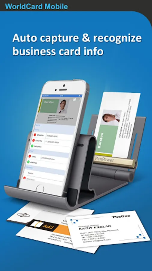 WorldCard Mobile, the leading business card scanning application for Android Phone, uses OCR (Optical Character Recognition) technology to instantly transfer information from business cards to users' native contacts. With a simple click of the camera, you no longer have to manually input contact info from business cards or email signatures.