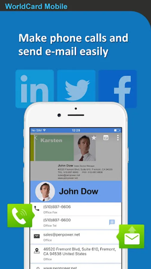 - View and manage contact info with Card holder function. Make a phone call, send SMS and email to your contacts directly.