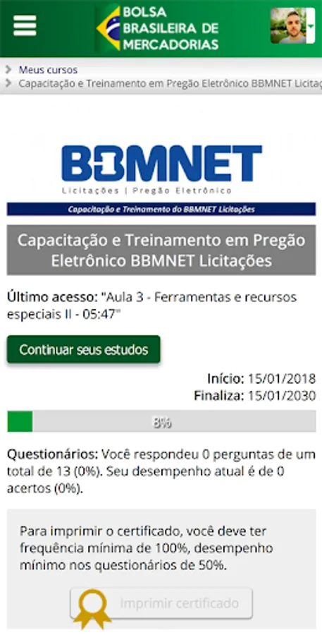The BBM EAD application is a distance learning tool developed by the Brazilian Commodities Exchange for the training and training of its clients, partners and associates.