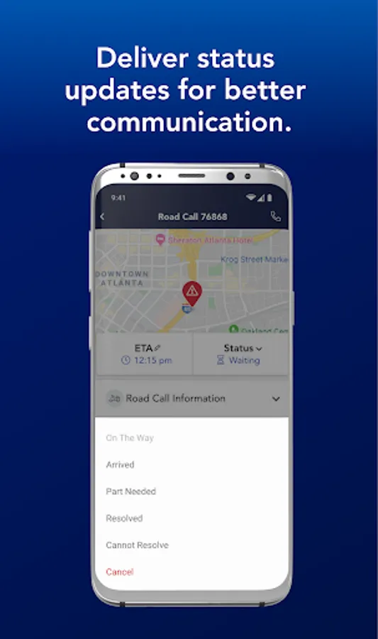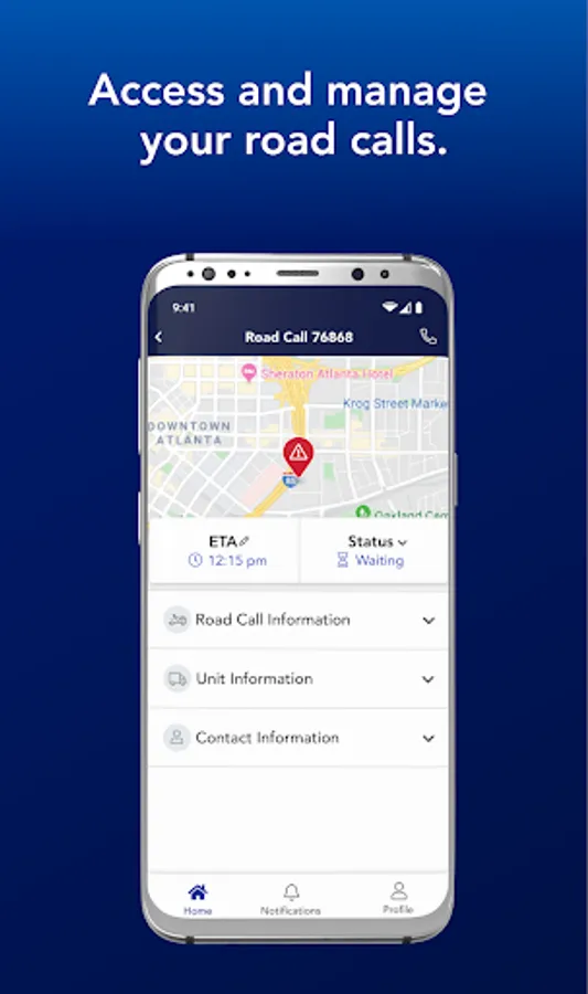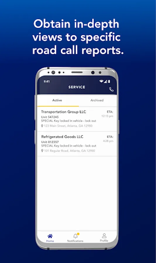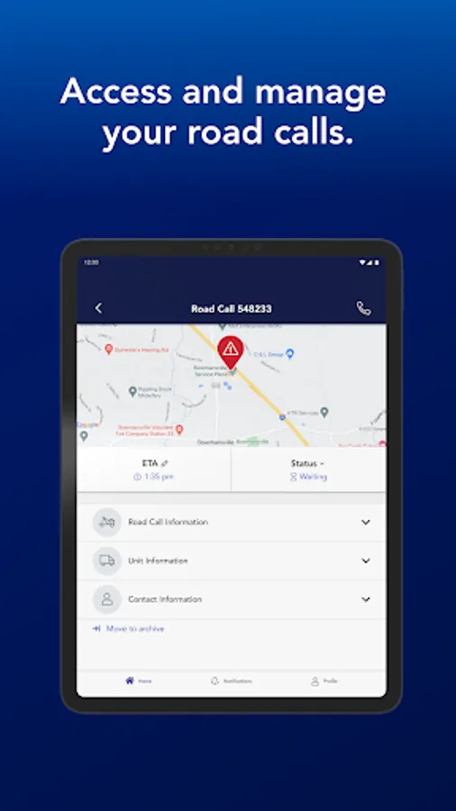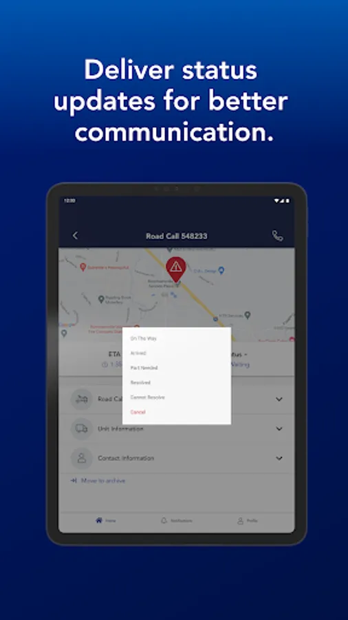 • Push Notifications – sent when a road call location has changed, or service has been cancelled