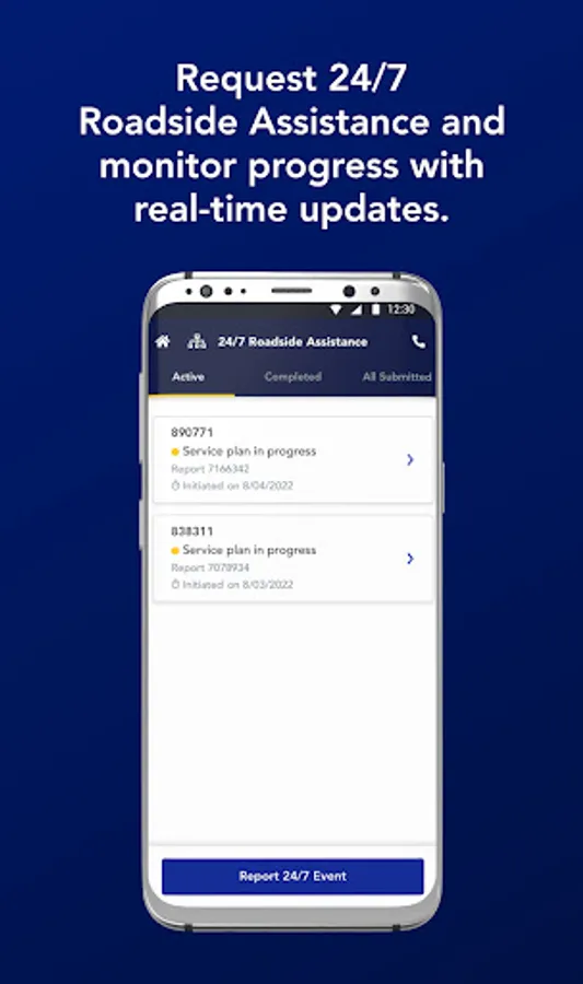 • Request 24/7 Roadside Assistance and monitor progress with real-time updates.