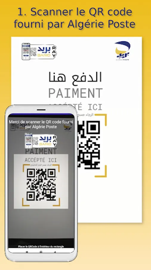 - Scan the QR Code provided by Algeria Post with the Khalasni application.