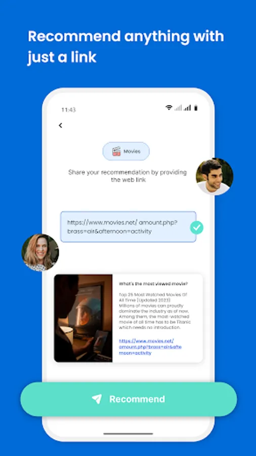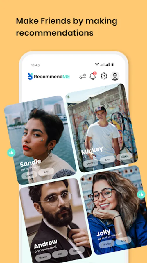 Discover a community of like-minded individuals who share your passions and interests. Whether you're a film buff, a TV show fanatic, a bookworm, or a music lover, RecommendMe brings together people who truly understand and appreciate the things that make you unique. It's a place where sparks fly through shared interests, and extraordinary connections are made.