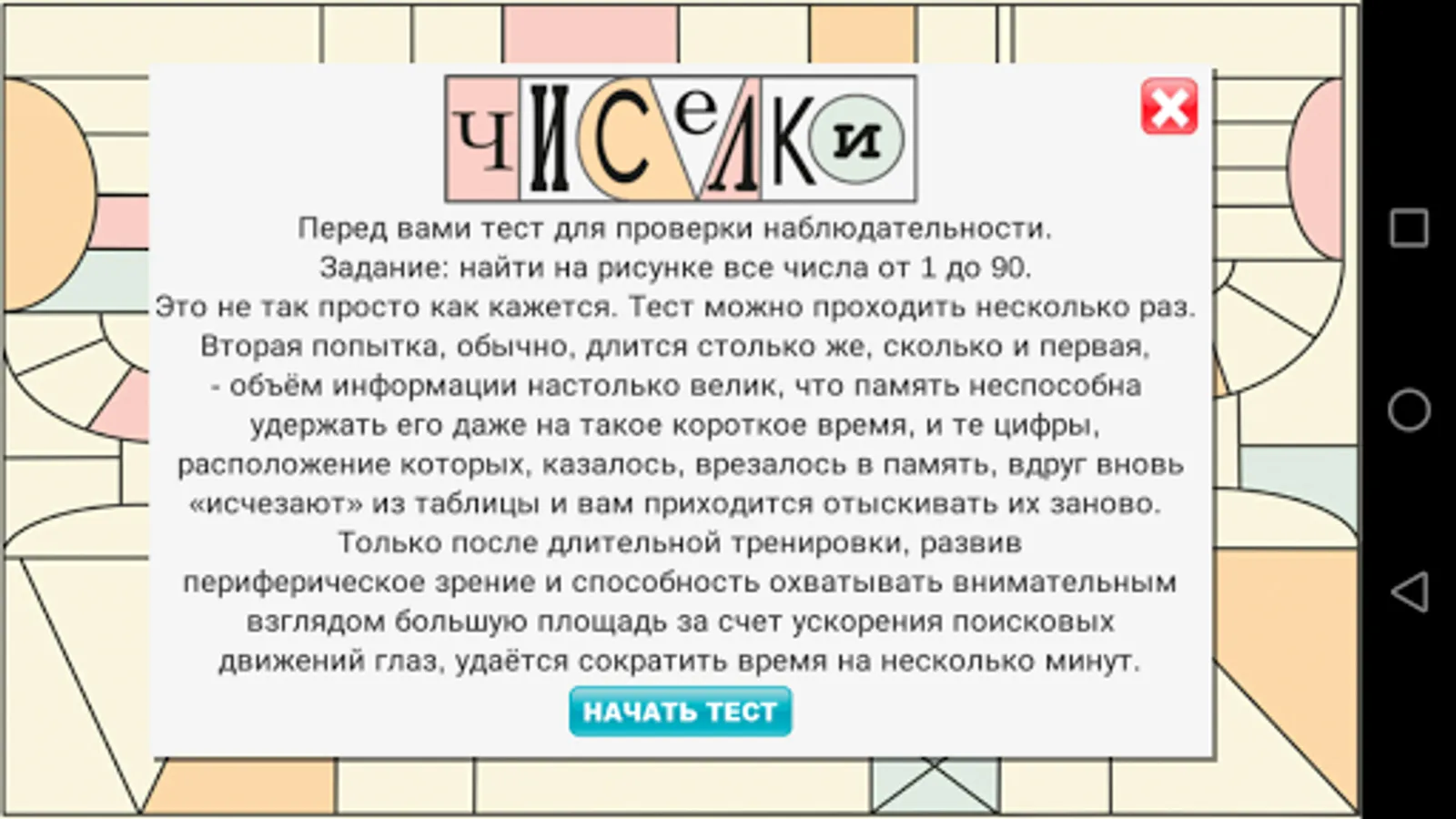 Here is a test to verify the observation. Mission: to figure all the numbers from 1 to 90. It's not as easy as it seems. The test can take place several times. A second attempt usually lasts as much as the first, - the amount of information is so great that the memory is unable to hold it even for such a short time, and those numbers, the location of which seemed to be stuck in my memory, suddenly "disappear" again from the table and you have to find them again.
