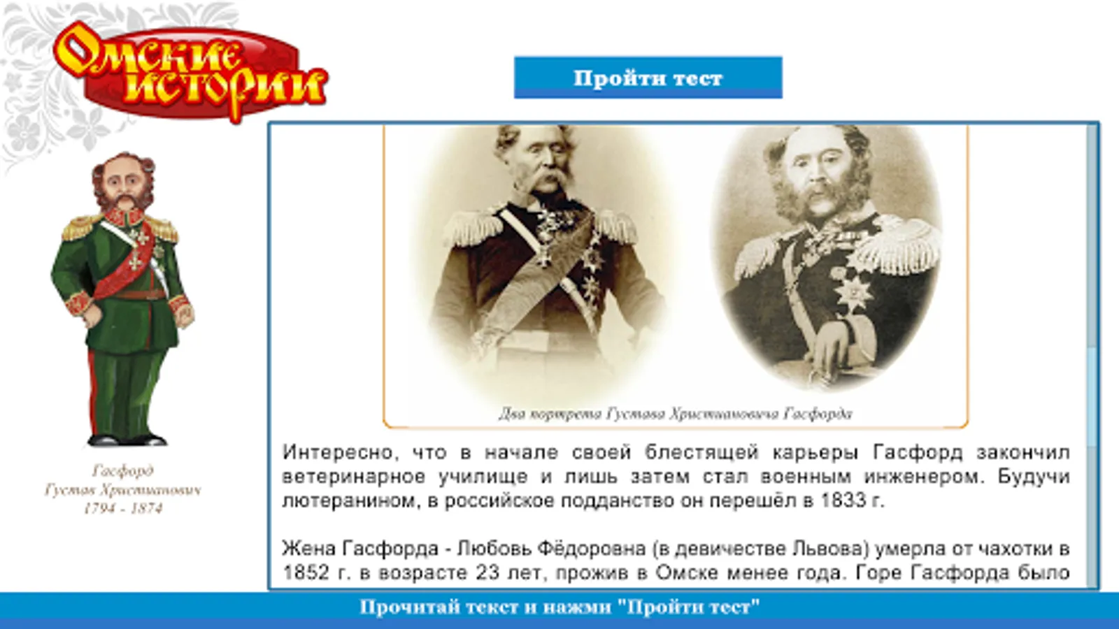 The fates of many famous people are somehow connected with Omsk. The whole history of the city of Omsk is inextricably linked with the history of Russia and is part of it. We tried to tell about the history of Omsk land briefly, simply and interestingly. Discovering our “Omsk Stories”, you will add a surprisingly vivid picture of the historical life of the Omsk land, full of heroic deeds and labor achievements of Omsk. The biographies of the great people who made the history of Omsk, Siberia and Russia will become more understandable and remembered. You can’t love what you don’t know. We hope that Omsk Stories will help you learn and remember bits of history of your people, your land.